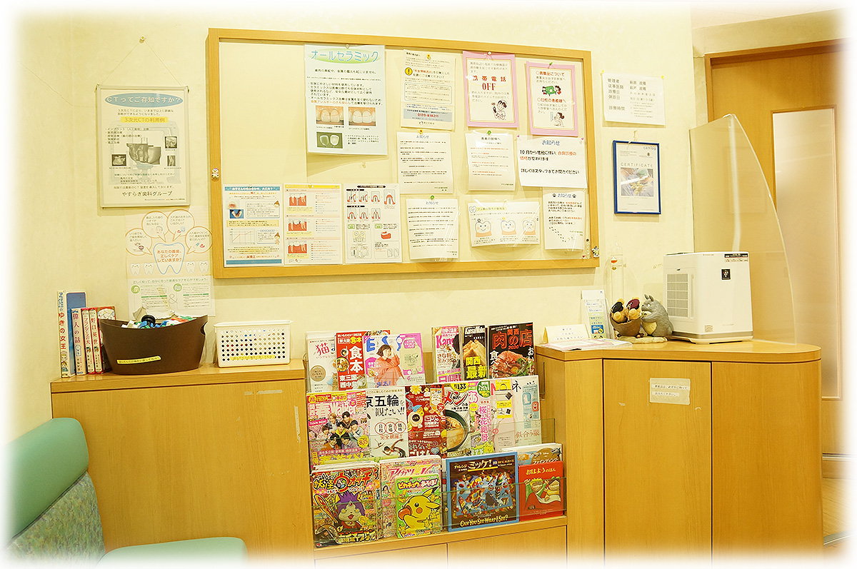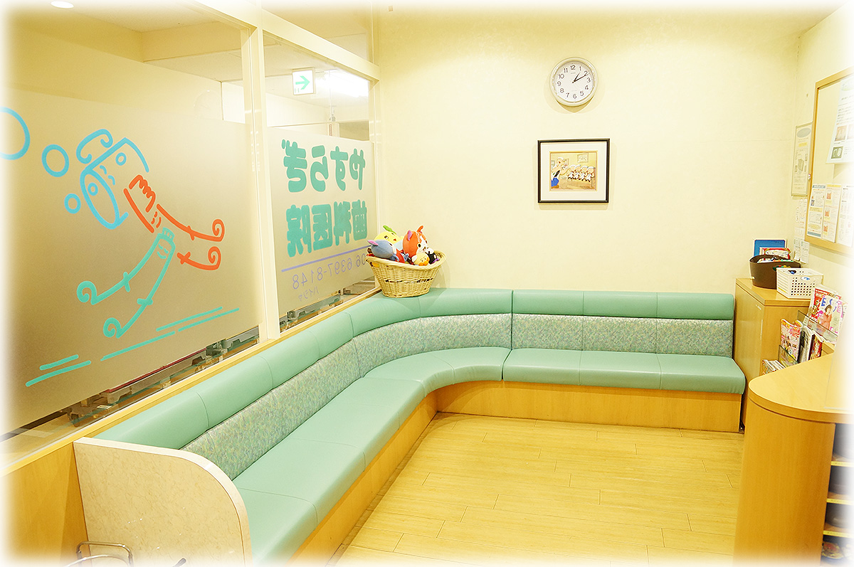 開放感のある待合室は、広々としたソファーでゆったりおくつろぎいただける空間になっております。お子様連れのお客様や車いす・ベビーカーを利用される方にも快適にお過ごしいただけます。