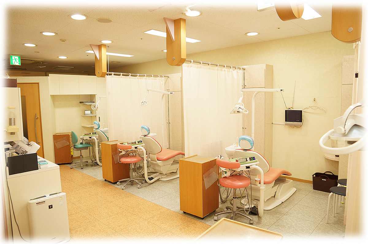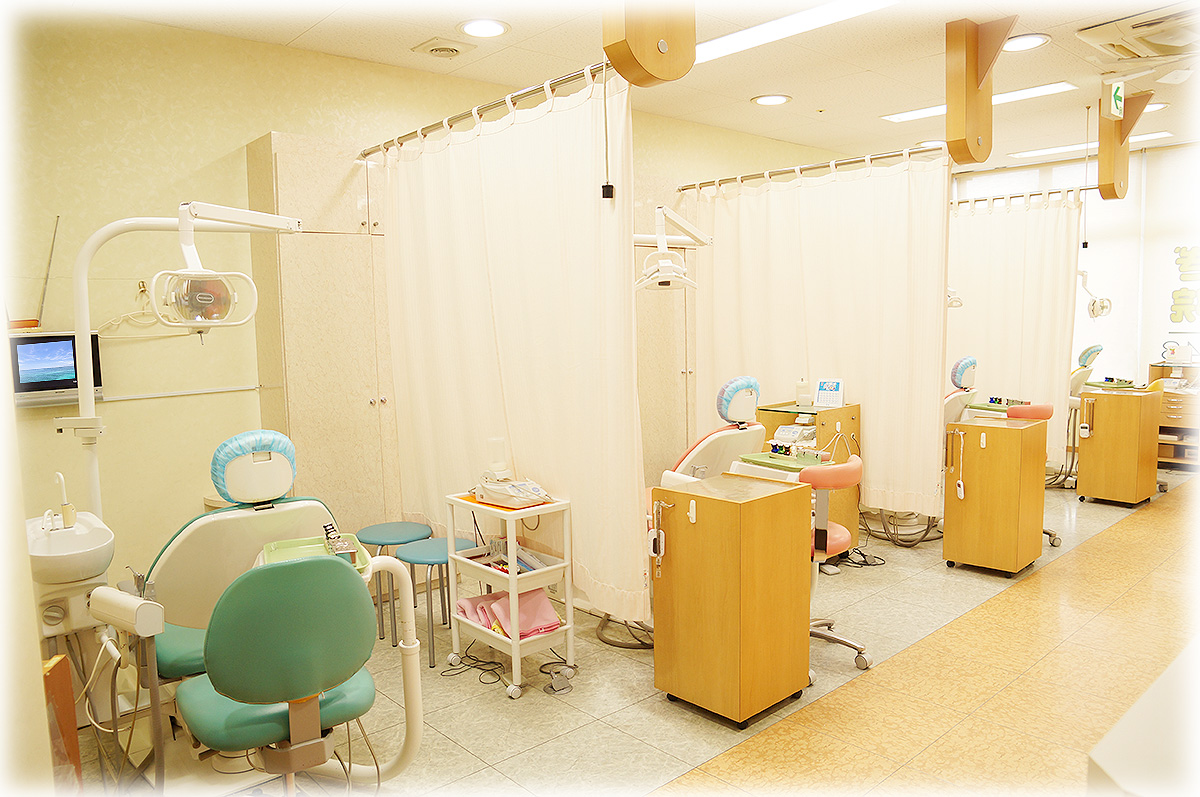 診療台がカーテンで区切られており、 診療室はプライバシーに配慮した空間になっており、安心して診療を受けていただけます。